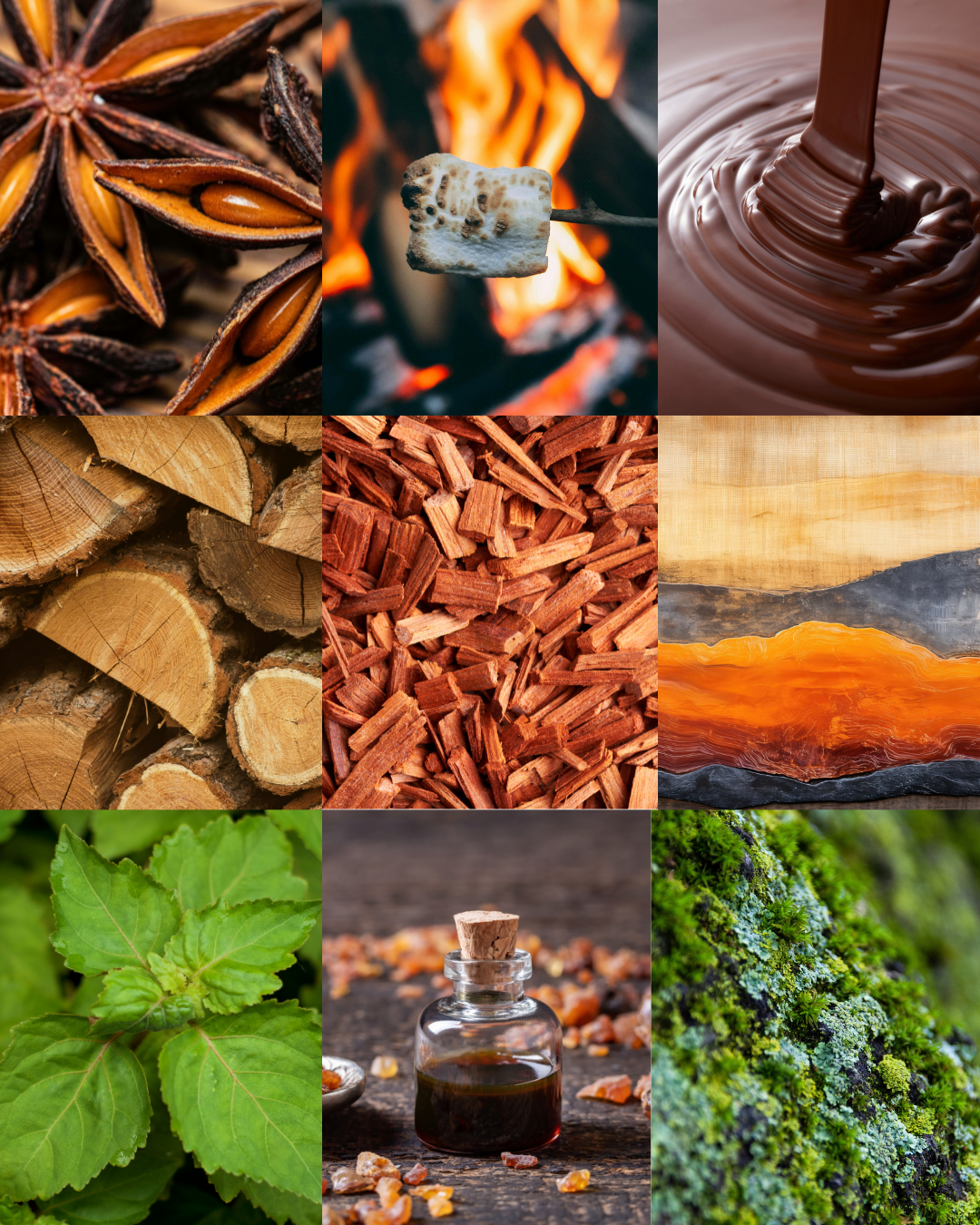 🌳 Notas amaderadas · 🌶️ Notas especiadas · 🌲 Sándalo · 🕯️ Resinas